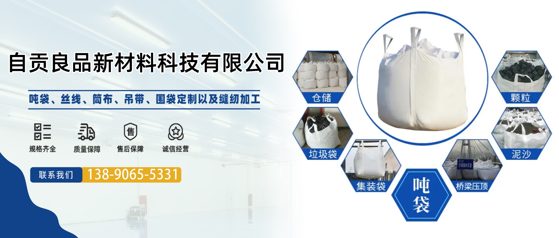 公司簡(jiǎn)介 自貢良品新材料科技有限公司位于自貢市貢井區(qū)航空產(chǎn)業(yè)園B4-01-5地塊。成立于2020年4月,占地面積18余畝,生產(chǎn)車(chē)間面積約6000平米,目前一線(xiàn)員工百余人。我們專(zhuān)注于集裝袋的研發(fā)、設(shè)計(jì)、生產(chǎn)。產(chǎn)品包括圓形集裝袋、方形集裝袋、拉筋集裝袋、托盤(pán)袋、敞口集裝袋等各種定制集裝袋。公司秉持著誠(chéng)信、創(chuàng)新、分享、拓展的價(jià)值觀(guān),為客戶(hù)提供系統(tǒng)的包裝解決方案與服務(wù)。 業(yè)務(wù)領(lǐng)域 作為集裝袋行...